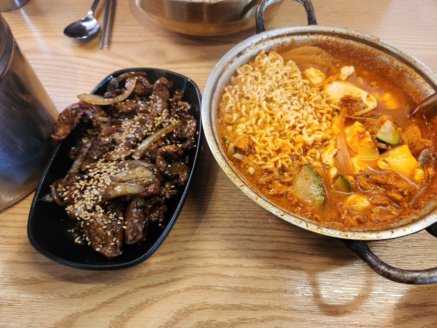 우리는 불고기와 찌개가 함께 나오는 불고기세트를 먹었다.